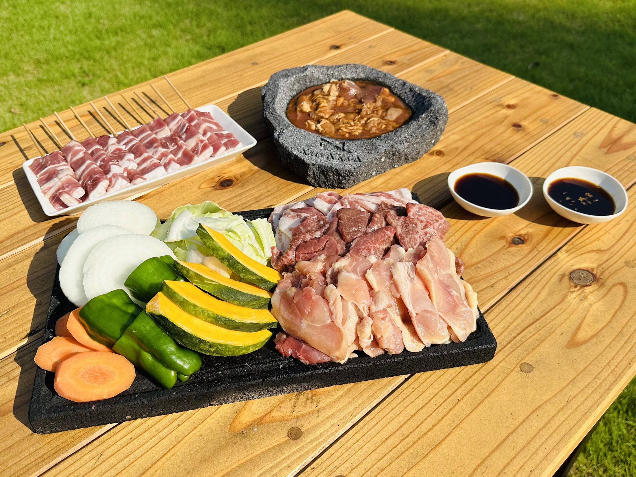 エアコン付きのバンガローで快適にデイキャンプが楽しめる森フェス限定プランです。BBQ用のお肉は岐阜県が誇るブランド肉3種類をご用意!BBQに必要なコンロや炭などの道具もついているので、手ぶらでアウトドア体験ができます。バンガローのデッキはタープ付きなので雨の日でも安心です。